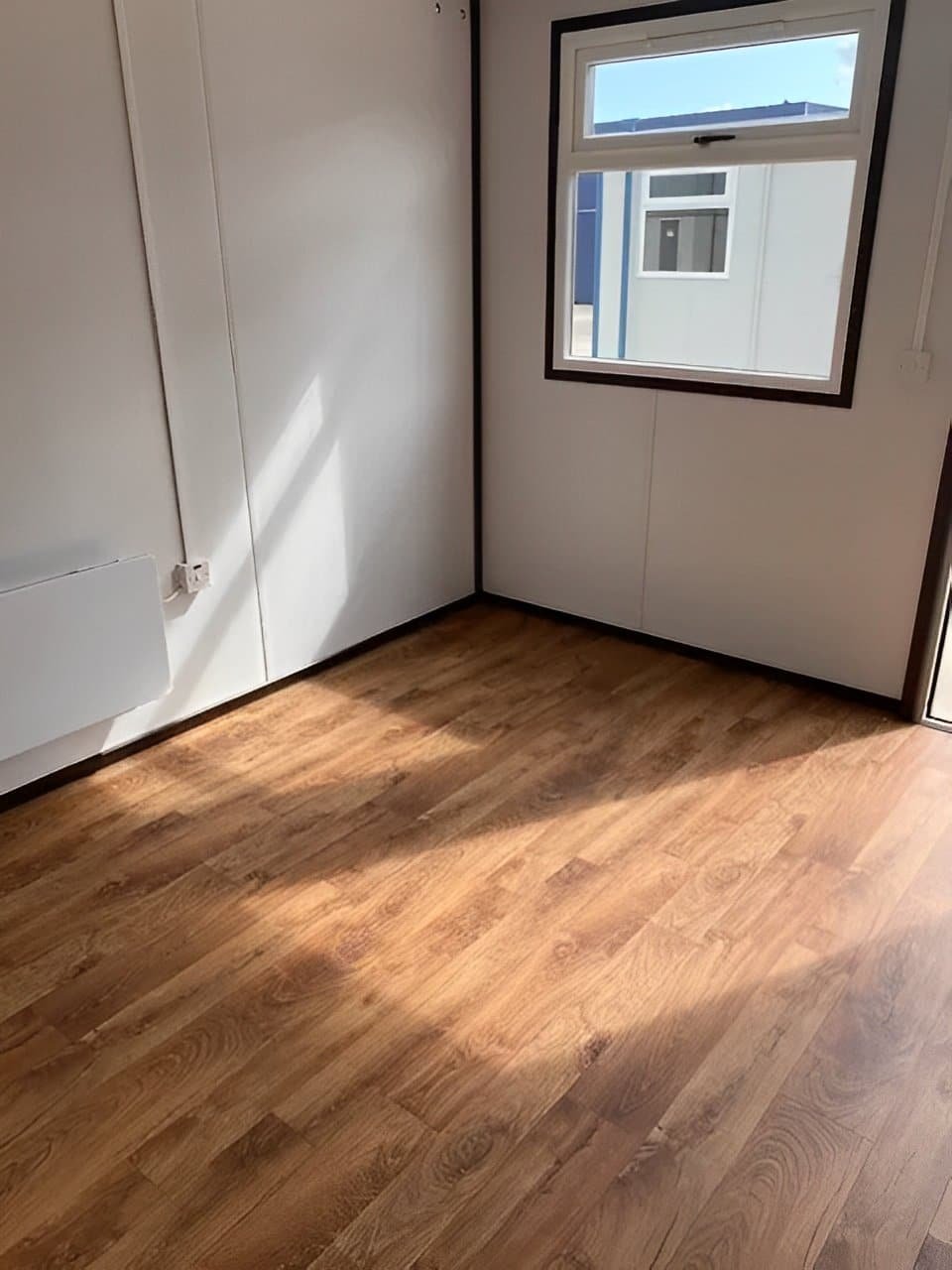 Featuring vinyl flooring, UPVc double-glazed window, and vinyl-faced plasterboard walls for easy cleaning and longevity.