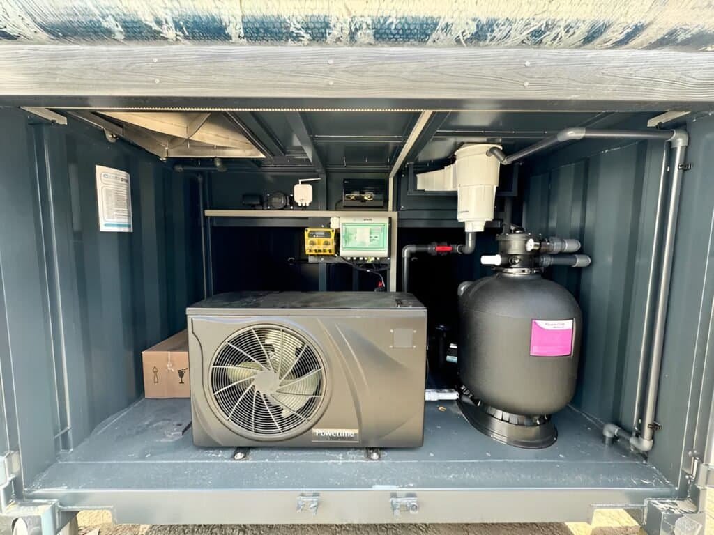 Crafted for year-round comfort and effortless maintenance, this container pool includes a high-capacity 11KW heating system, advanced filtration, integrated LED ambiance lighting, and a durable steel structure finished with elegant decking in Westminster Grey