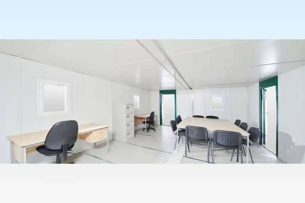 Our 6.5M X 4.6M Side Linked Flat Pack Container Office is created by linking two of our 6.5m office cabins side by side.